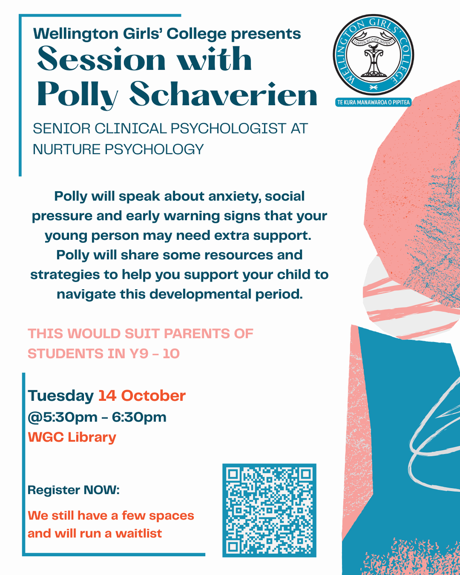 We are excited to invite families to a session with Polly Schaverien, a Senior Clinical Psychologist at Nurture Psychology. Polly is a skilled clinician with extensive experience supporting adolescents and their families. This session offers a valuable opportunity to learn from her expertise and gain insights into adolescent mental health.